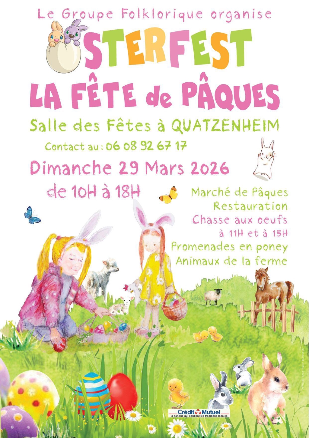 L’occasion parfaite pour célébrer Pâques et l’arrivée du printemps dans une ambiance conviviale 🌷. Au programme, chasse au œufs, promenades en poney, animaux de la ferme, restauration et de nombreux artisans.